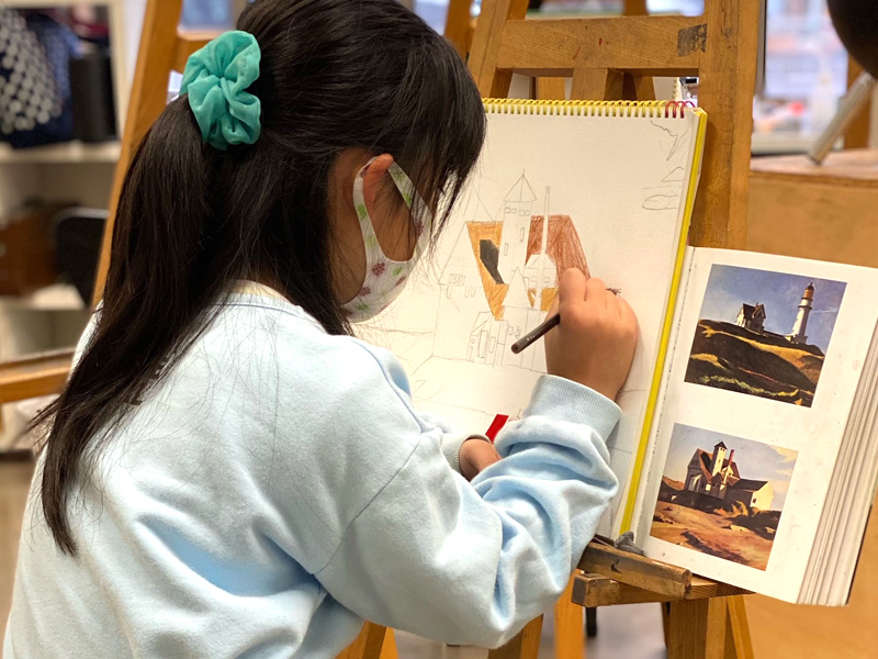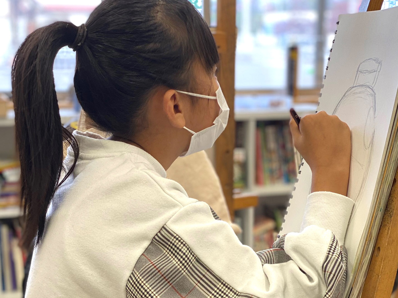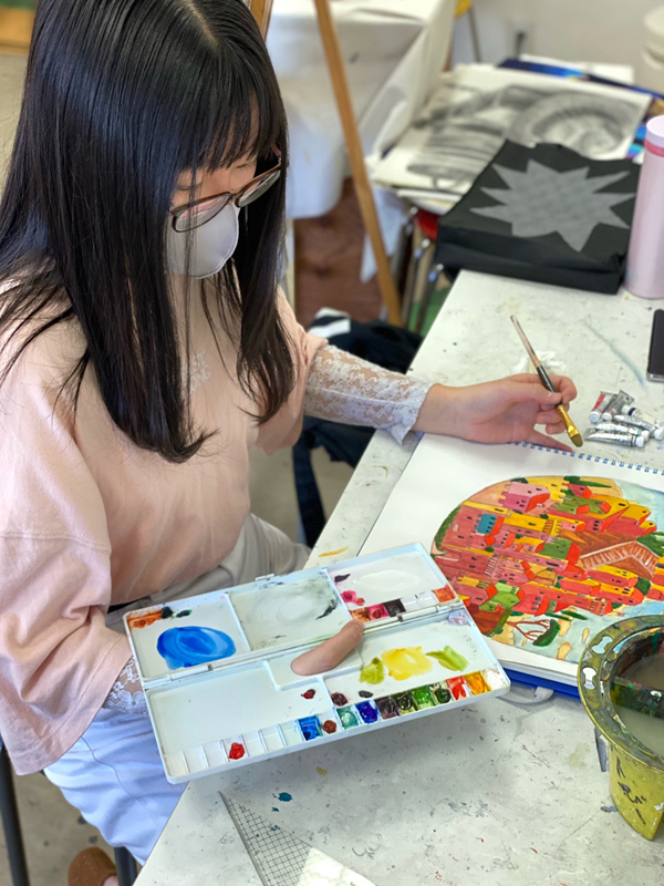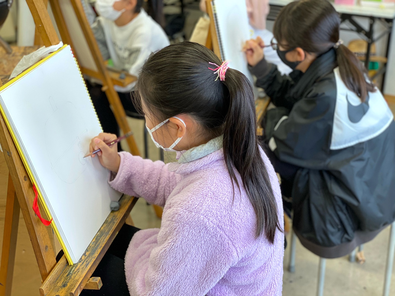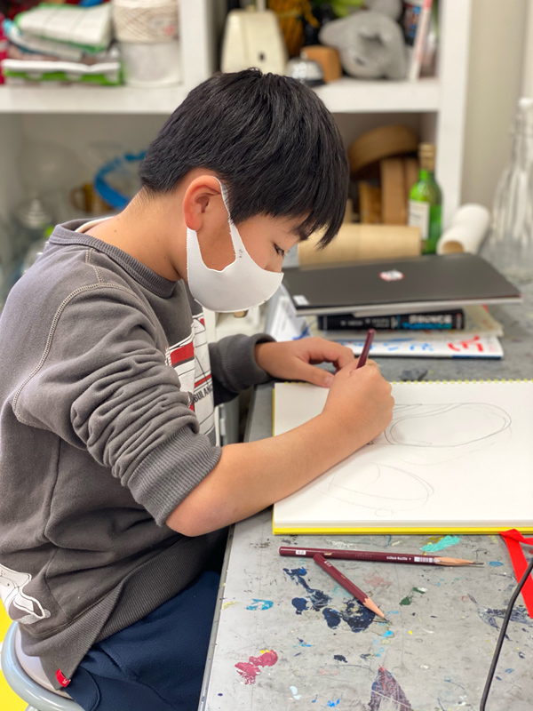 小学生~中学生を推奨とし、美術を通して想像力と可能性を養うクラスです。近年の学校教育では美術をはじめとする文化的教育の授業時間削減、美術教育の希薄さが問題視されています。点数として目に見える結果を出すのではなく、一人ひとりが持つ「感性」や「個」を大切に育て、将来の夢の選択肢を広げてあげたいと考えています。